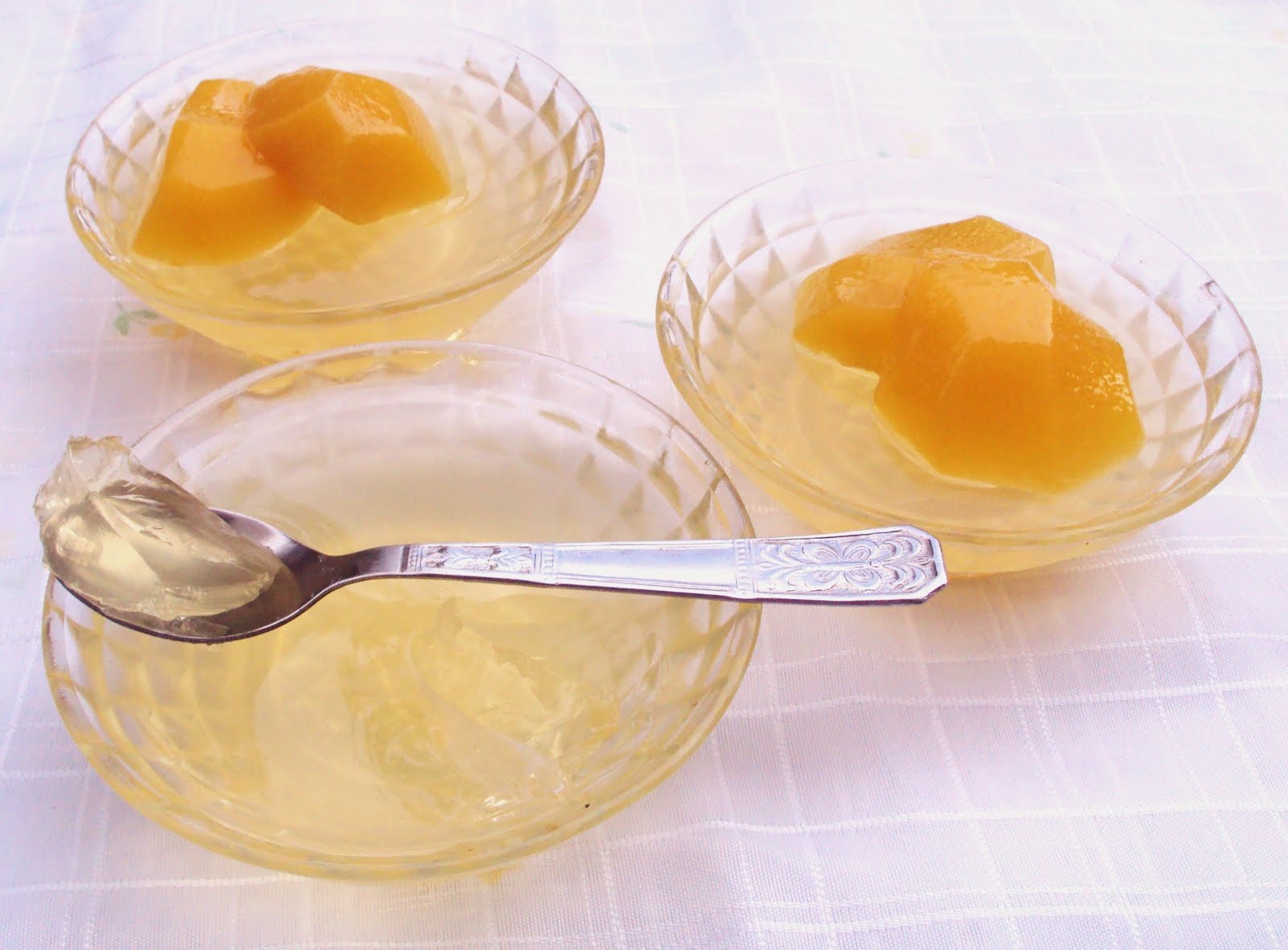 Nota: Pode substituir a calda de péssego por calda de ananás ou de outro fruto de lata e, assim, obterá gelatinas de diferentes frutos.