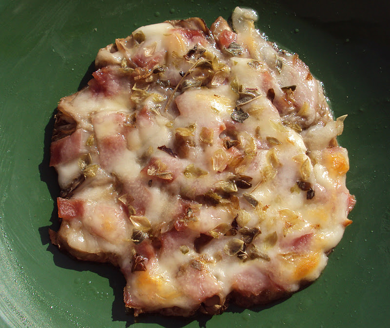 Sobre o cogumelo temperado coloque alguns pedacinhos de bacon e azeitona. Polvilhe com queijo mozzarella ralado (como tinha apenas em fatias cortei em tiras) e polvilhe com oregãos. Leve ao forno a 180ºC durante 15-20 minutos, ou até o cogumelo estar cozinhado e o queijo gratinado.