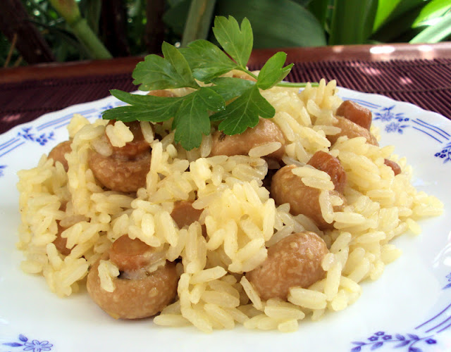 11. E como ficou com visual lindo esse seu arroz Nárwen querida. Adoro um arrozinho e assim com cogumelos ficou extremamente delicioso. Gostei muito dessa receita amiga. Seu prato, achei muito delicado com esses detalhes em azul. Bjos