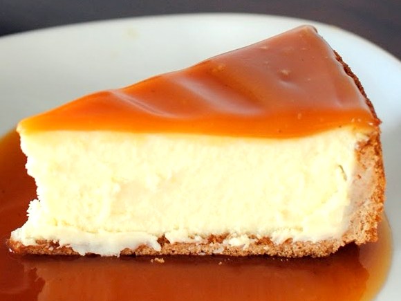 Coloque o caramelo, ainda morno, sobre o cheesecake solidificado e alise a superficie para que não se formem bolhas. Leve ao frigorífico por mais 1 hora. Sirva fresco.