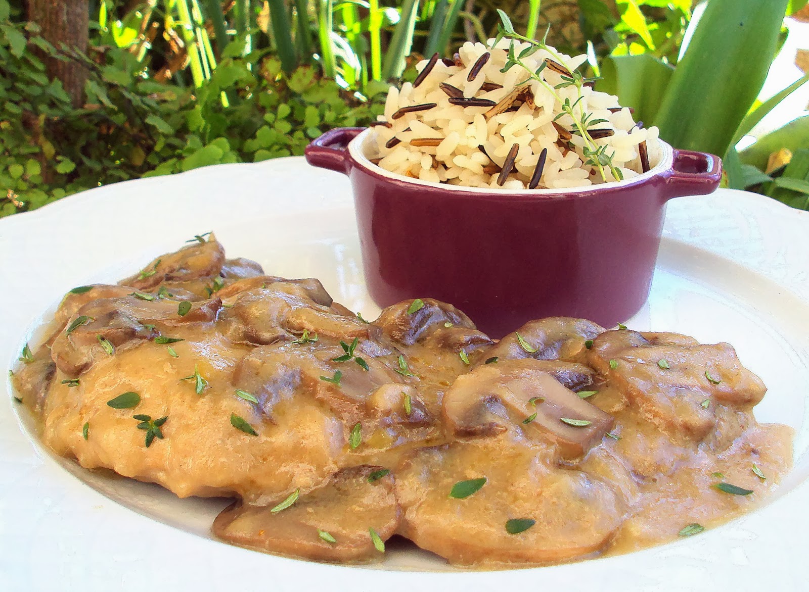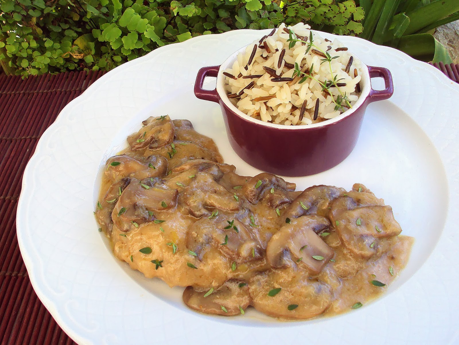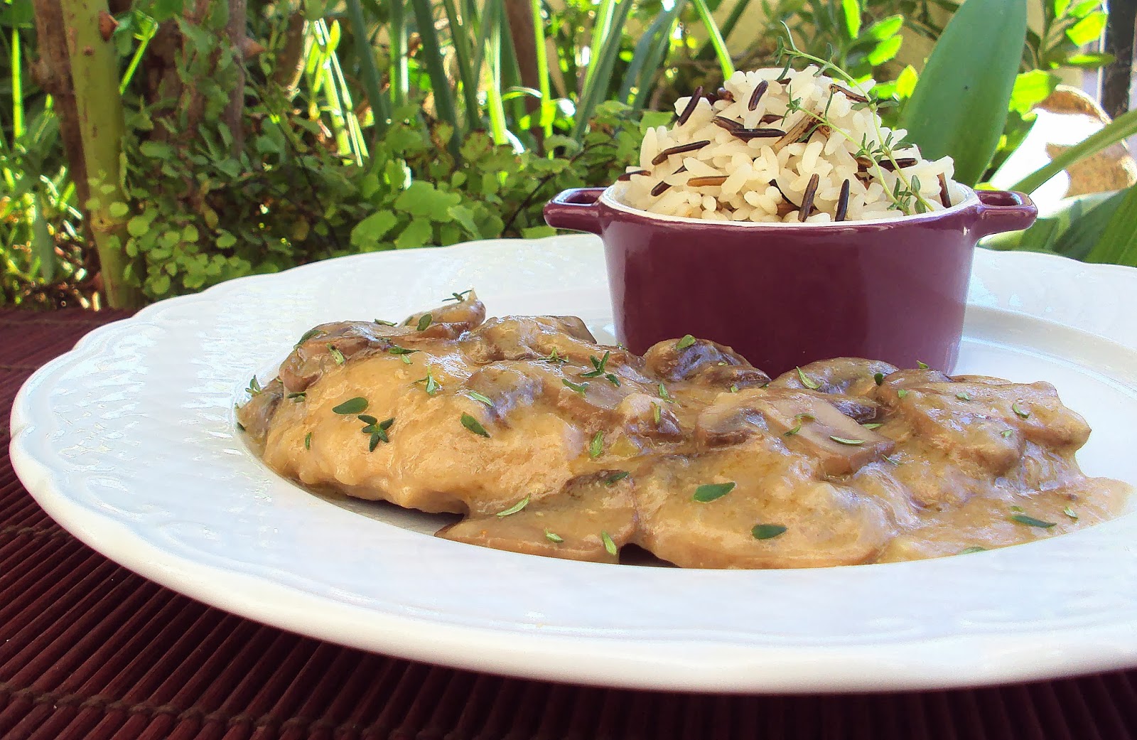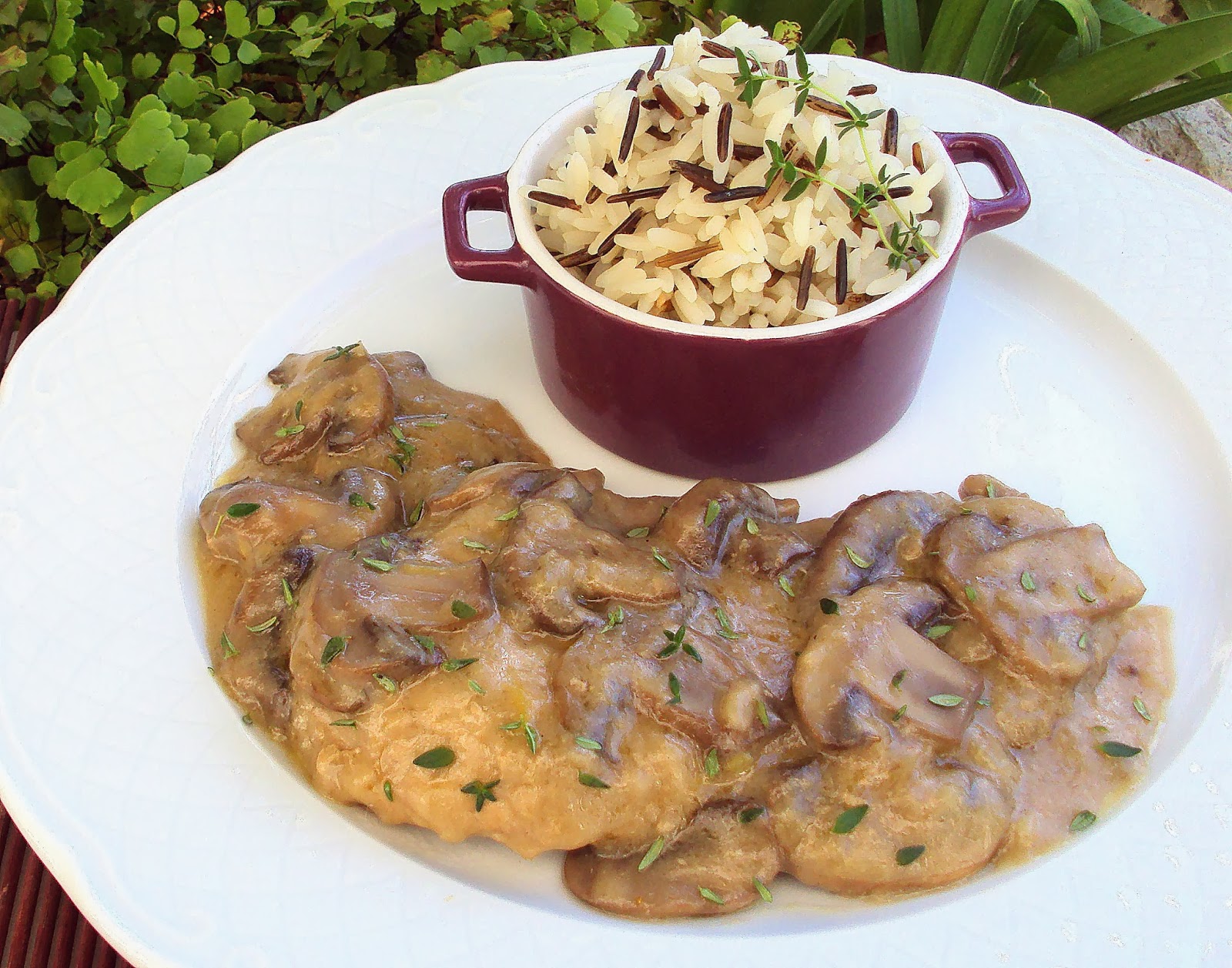 Continue a mexer até que o molho se transforme num creme. Junte, de seguida, o cubo de caldo de carne desfeito numa chávena de água a ferver. Vá mexendo sempre e, quando o molho se apresentar espesso, adicione os bifinhos e 1 cálice de vinho do Porto. Mexa mais um pouco e junte os cogumelos. Envolva bem e rectifique o sal. Deixe o molho ferver um pouco, mas sem engrossar demasiado. Sirva polvilhado com tomilho fresco e acompanhado de mix de arroz selvagem.