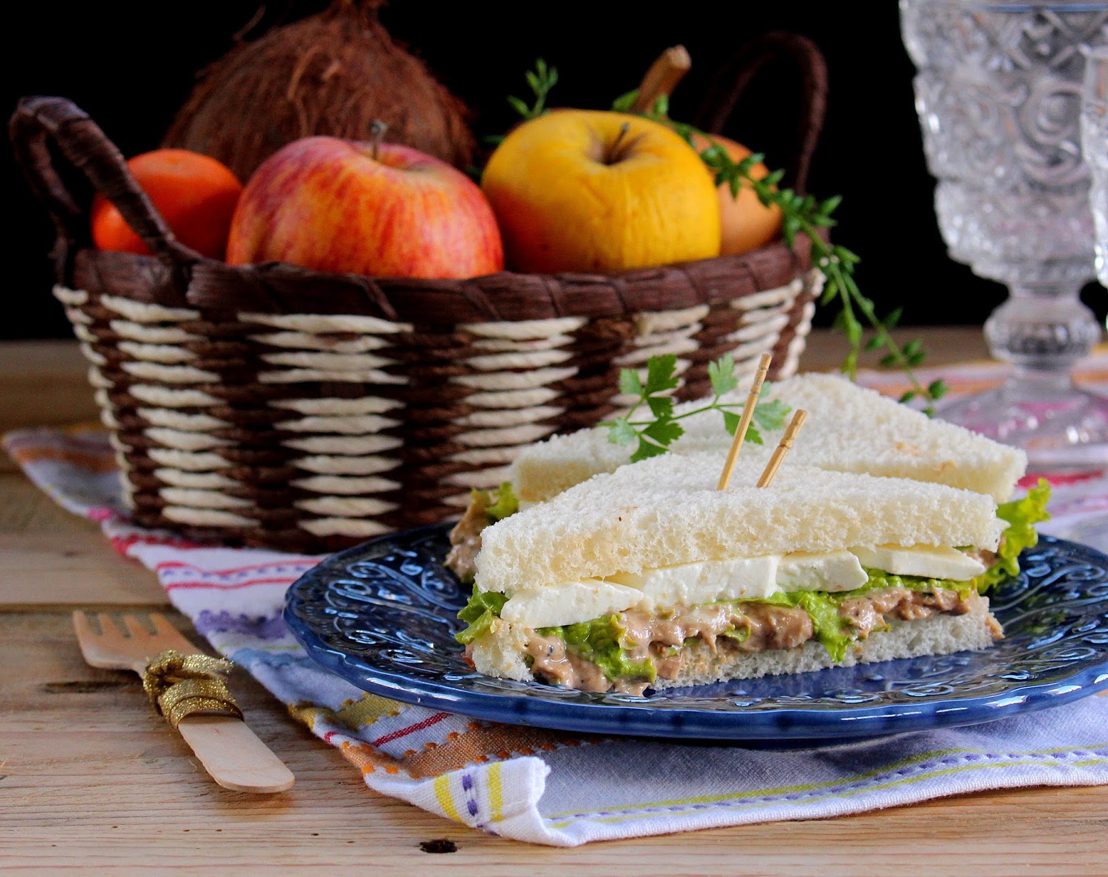 Coloque metade de uma folha de alface sobre uma fatia de pão, barre com o creme de cavala e cubra com outra metade de alface. Adicione o queijo fatiado temperado com sal e pimenta e termine adicionando uma última fatia de pão.
