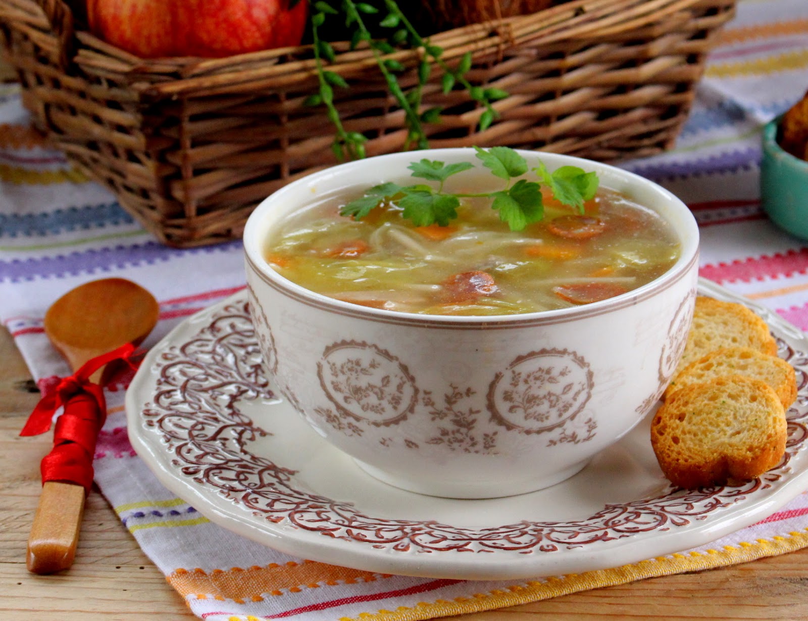 Sirva a sopa com biscottinas redondas de alho e salsa.