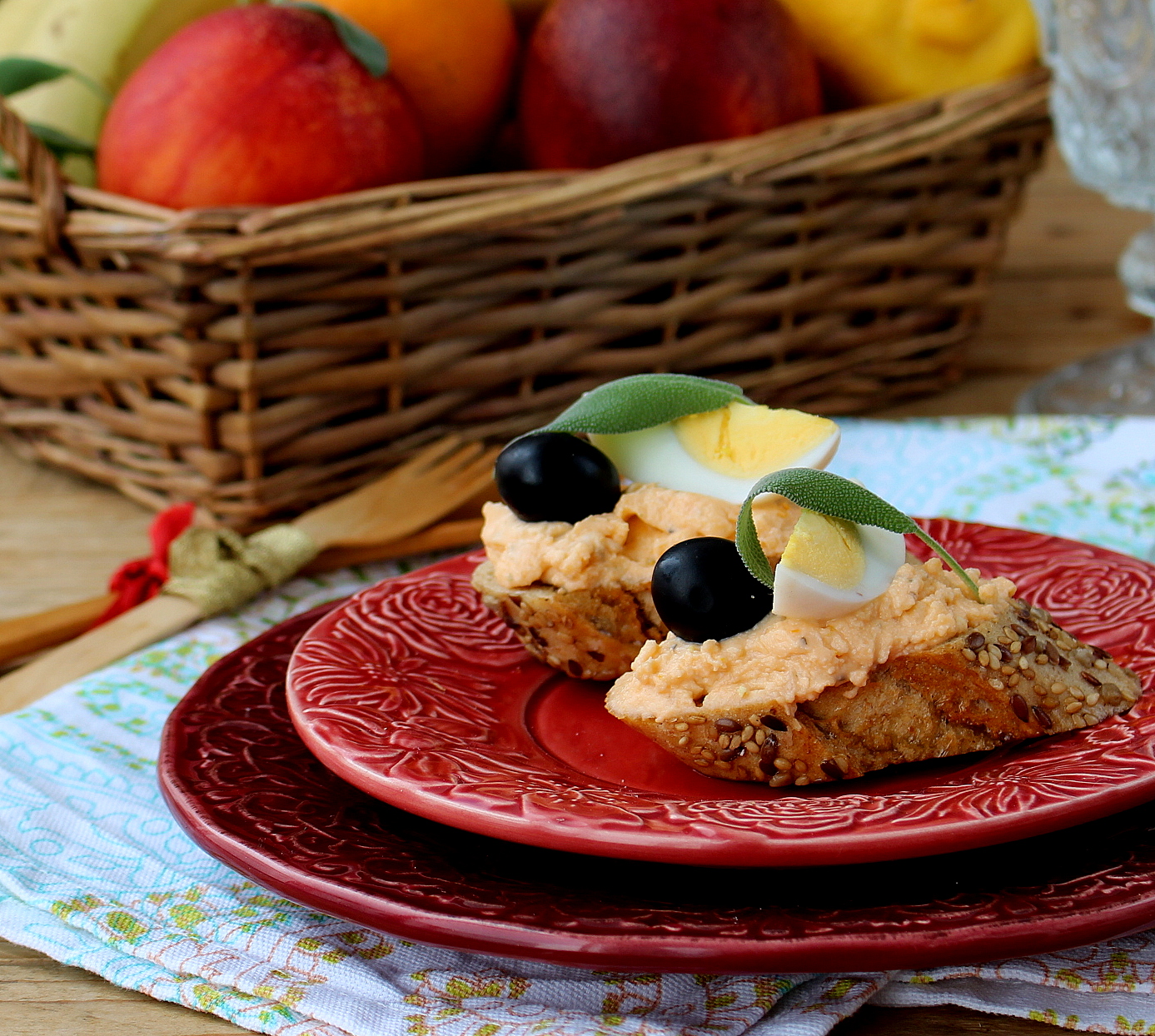 Retire do forno, deixe arrefecer um pouco e barre com o requeijão. Adicione uma azeitona e um pedaço de ovo cortado em gomo.