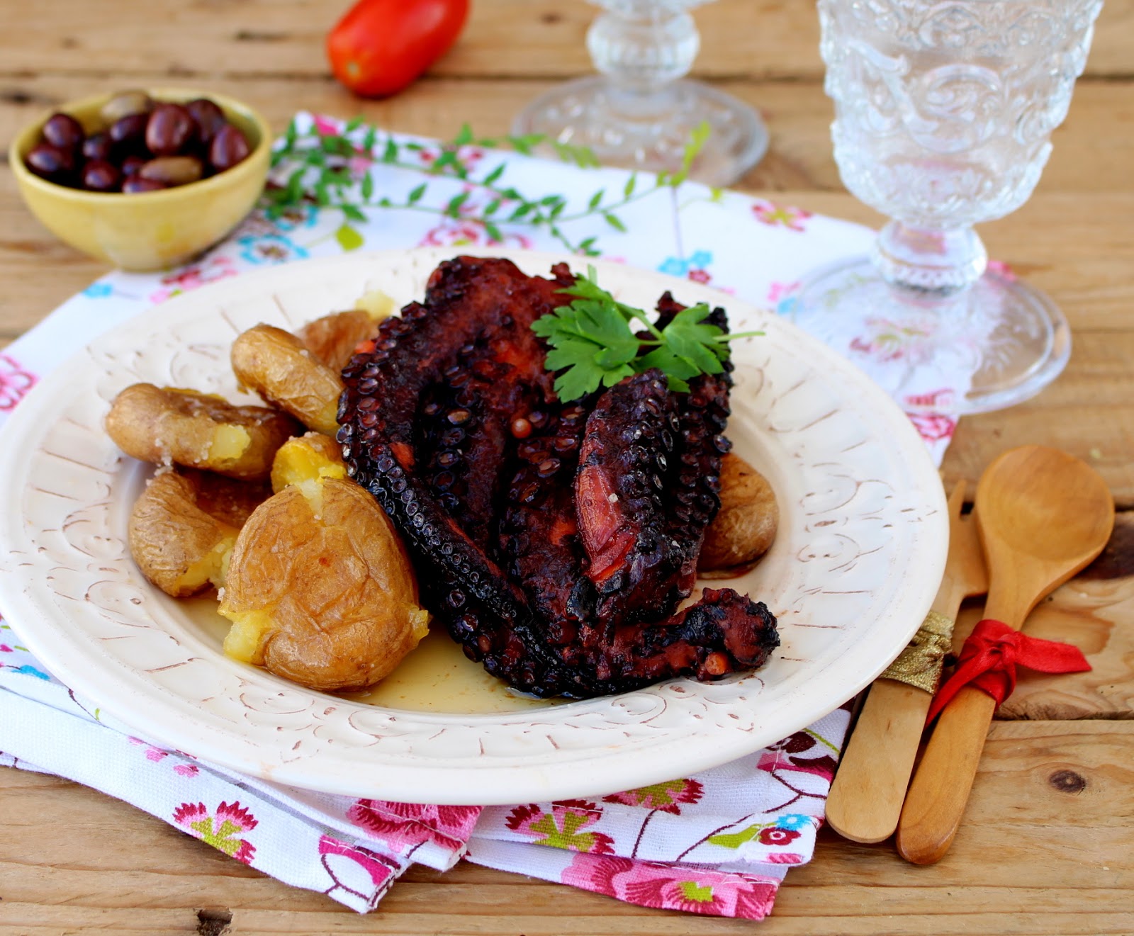 Sirva o polvo com as batatas regadas com o molho de azeite.