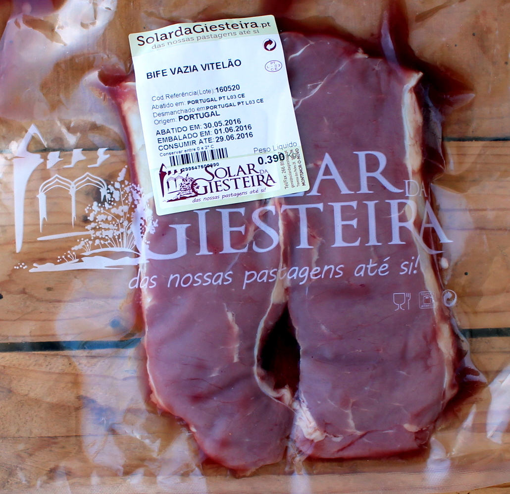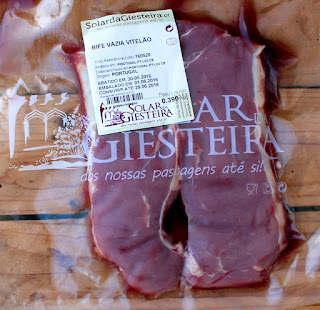 4 bifes da vazia de vitelão - usei a carne do Alentejo alimentada a bolota do Solar da Giesteira (compre aqui)