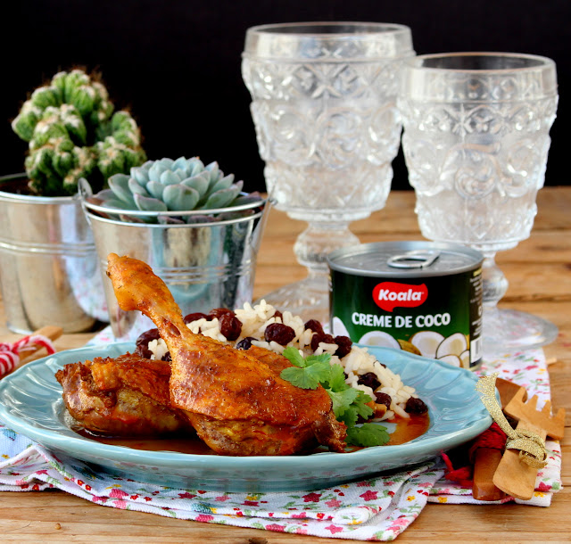 Serva o caril de pato polvilhado com coentros frescos e acompanhe com o arroz de passas.