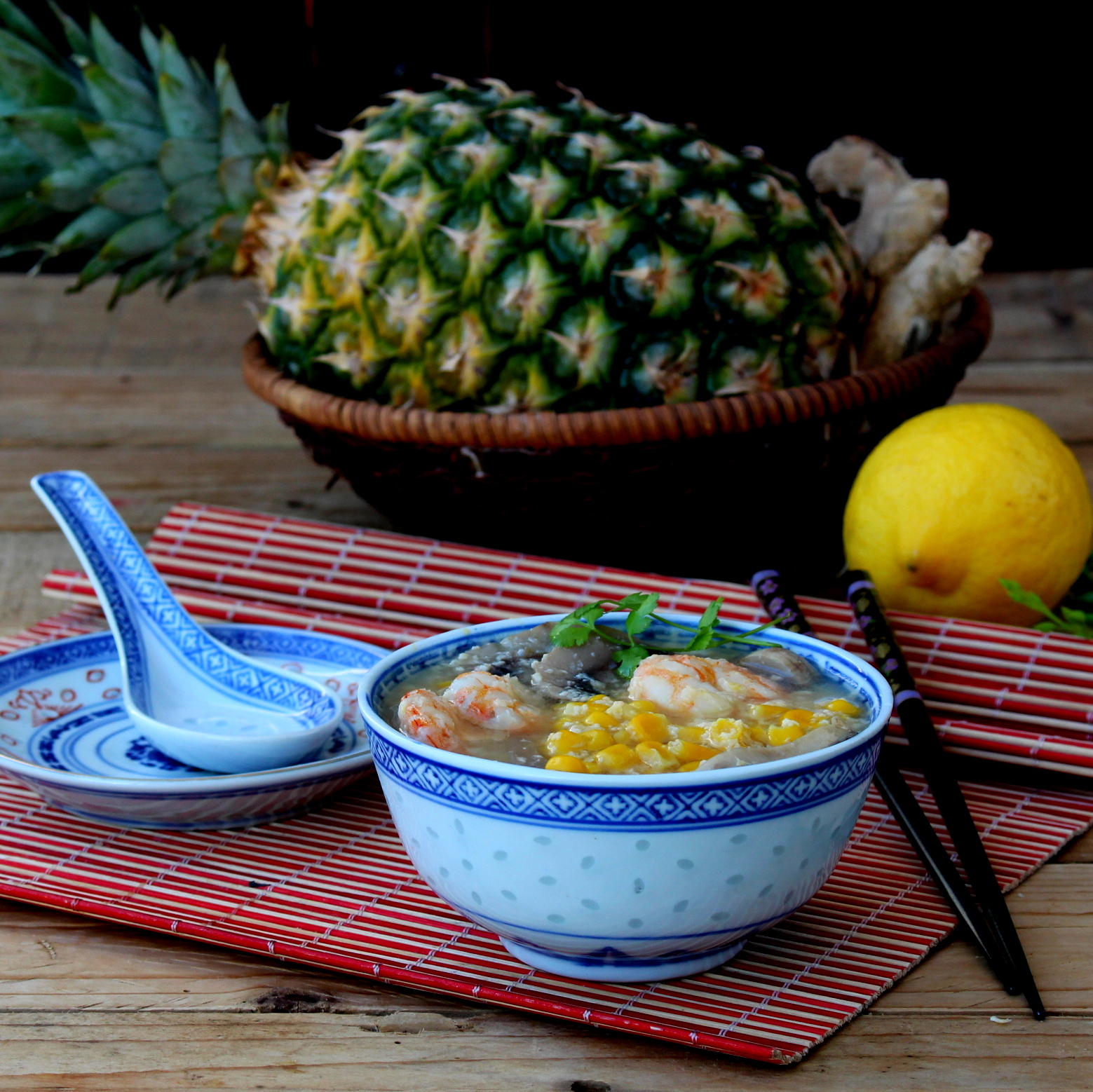 Aqueça o óleo de amendoim, junte-lhe os dentes de alho laminados e a cebola, assim que começarem a amolecer, acrescente os camarões. Deixe cozinhar um pouco de ambos os lados e junte a cenoura, os cogumelos e a couve. Tempere com a mistura chinesa de cinco especiarias e salpique um pouco de bicarbonato de sódio. Envolva e deixe cozinhar por 5 minutos.