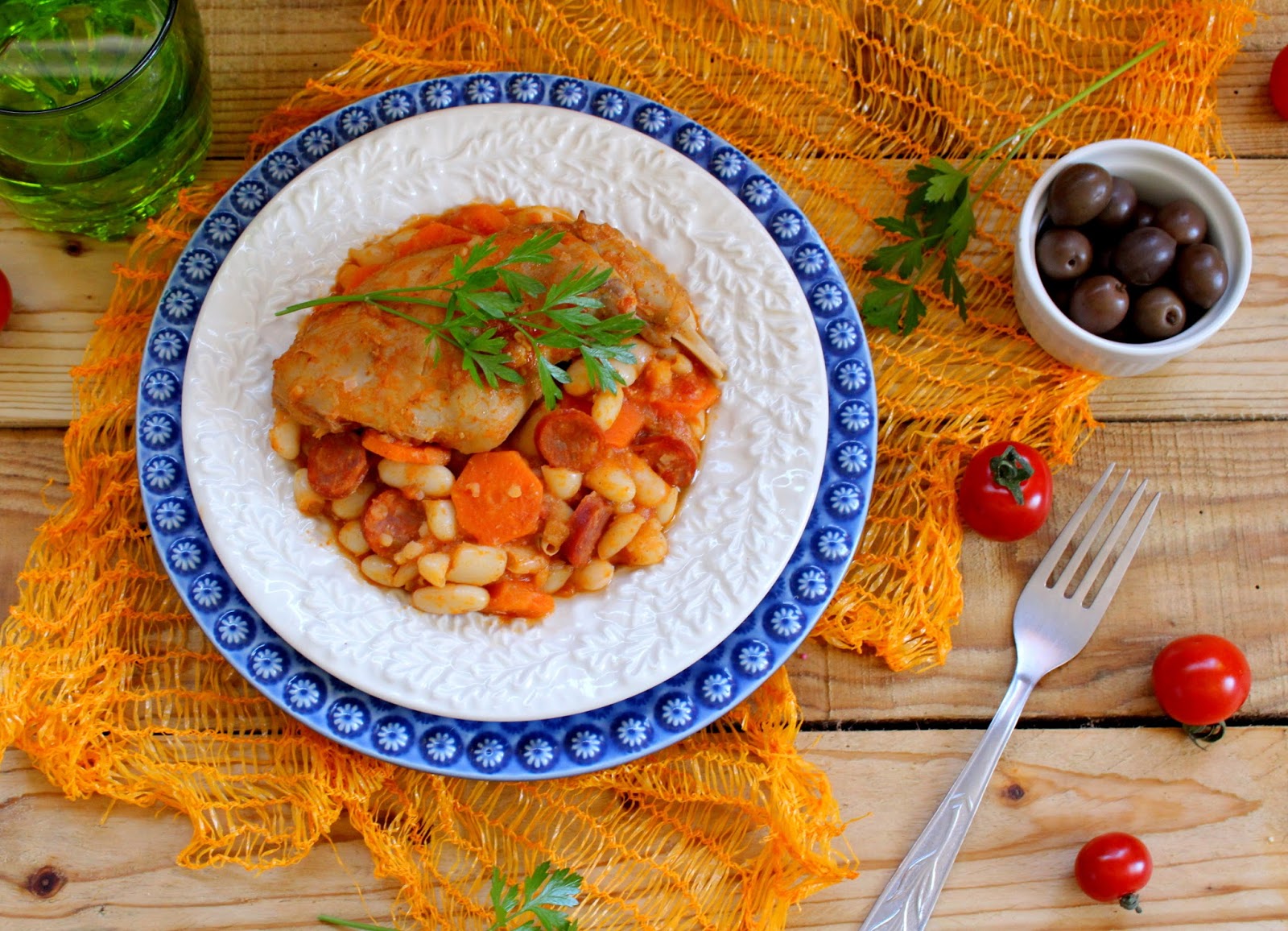 Quando a carne já estiver macia introduz-se o feijão e, se necessário, uma concha de água da sua cozedura.