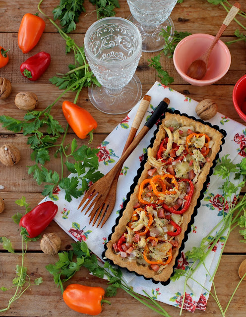 Tarte de Frango com Salpicão, Queijo e Pimentos