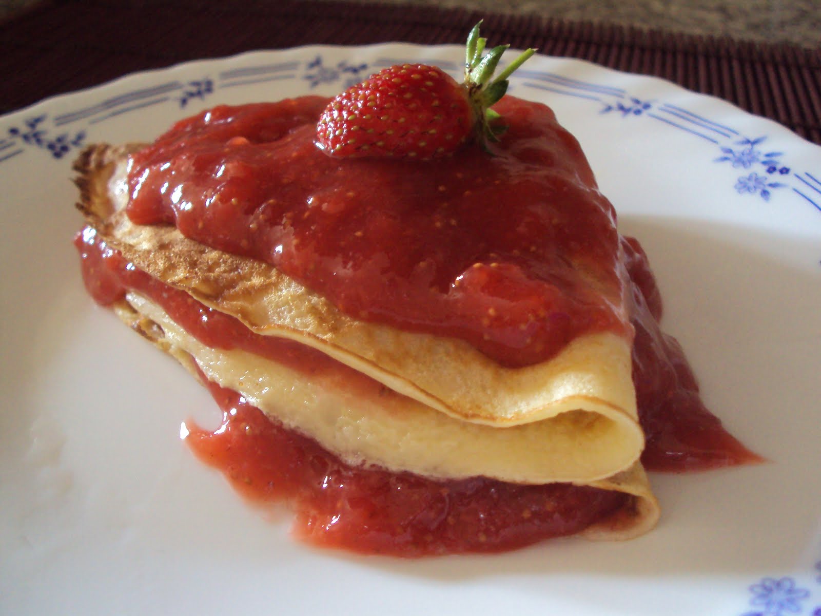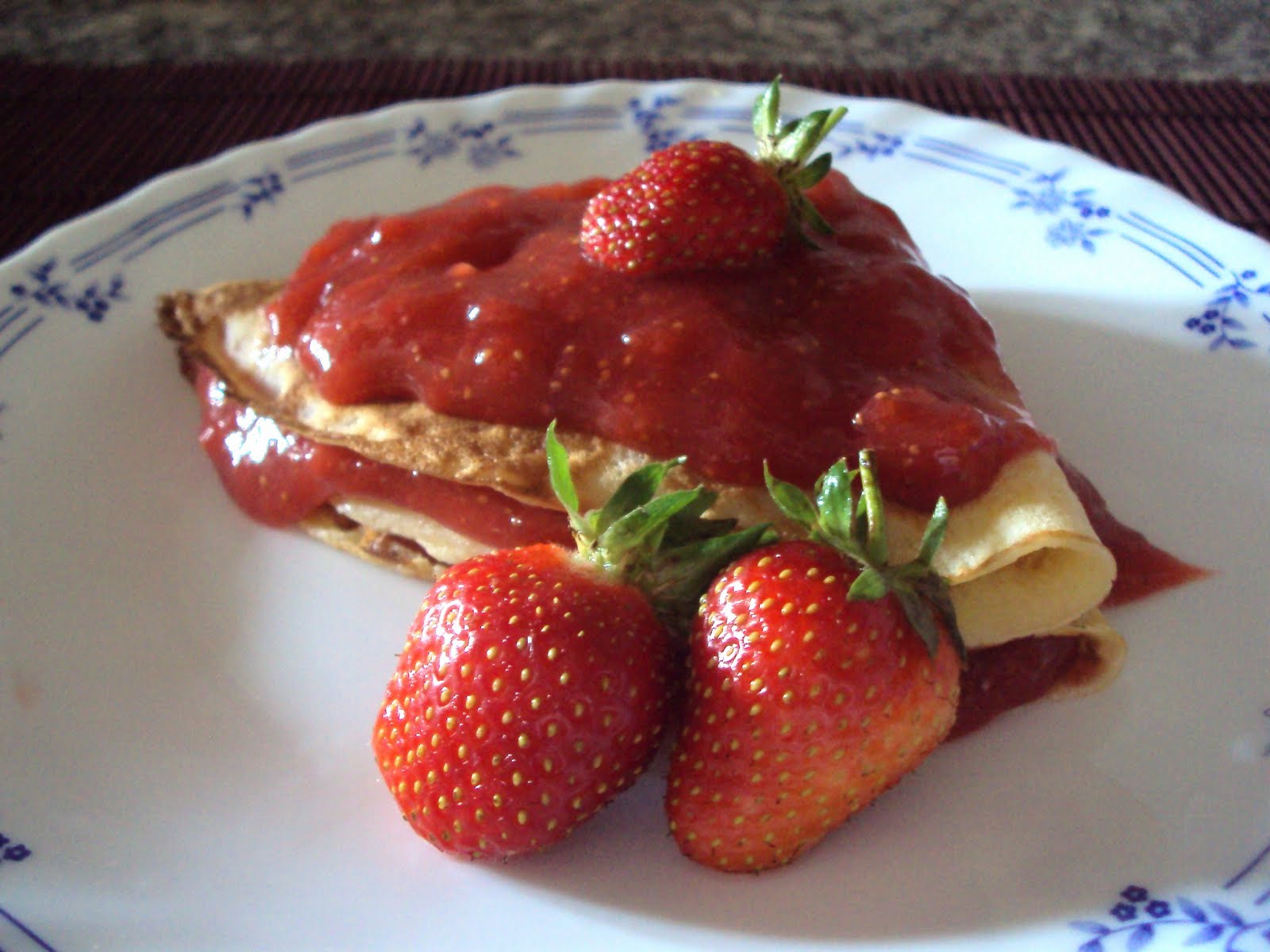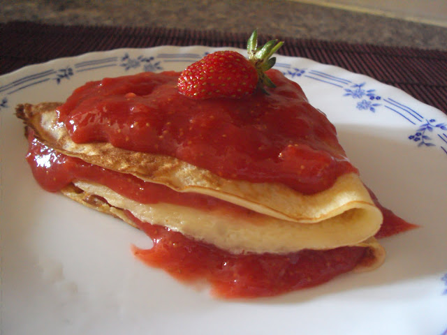 Crepes de Baunilha com Coulis de Morangos
