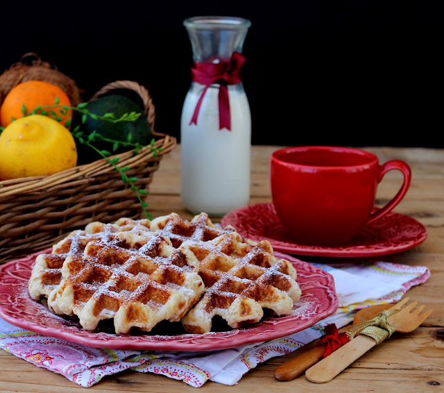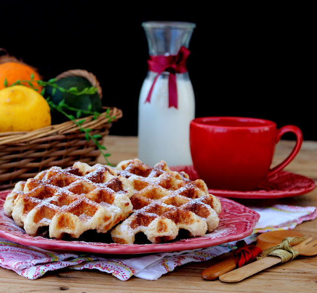 Passado esse tempo, transfira a massa para uma superfície polvilhada com farinha. Juntar o açúcar branco à massa e amasse mais um pouco para que fique bem distribuído. Divida a massa em 14 bolinhas do mesmo tamanho, coloque-as sobre uma superfície forrada com papel vegetal/tapete de silicone e dê-lhes um formato arredondado. Polvilhe, abundantemente, com açúcar demerara e cubra com um pano. Deixe, em temperatura ambiente, por cerca de 30 minutos.Ligue a máquina de waffles e, quando esta estiver quente, adicione uma bolinha de massa no centro de cada compartimento. Feche a máquina e deixa cozinhar por 5 minutos, ou até dourar. Assim que dourarem, retire-os para um prato e sirva-os mornos polvilhados com açúcar em pó