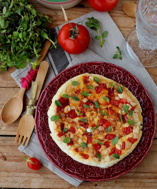 Transfira a massa para uma forma redonda (grande) e espalhe-a, alisando a sua superfície. Leve-a ao forno, previamente aquecido a 180ºC, por 10 minutos ou até apresentar-se cozida.