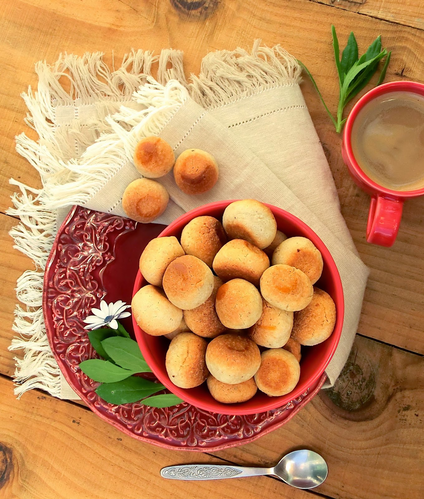 Com uma colher de sobremesa, retire porções de massa e forme bolinhas do tamanho de nozes. Disponha-as no tabuleiro, espaçadas, e achatando-as ligeiramente. Pincele a superfície de cada uma das bolinhas com a gema batida e leve ao forno, cerca de, 10-12 minutos, sendo que, ao retira-las do forno, estas ainda estarão moles. Deixe arrefecer no tabuleiro por 5 minutos e, depois, sobre uma grelha.